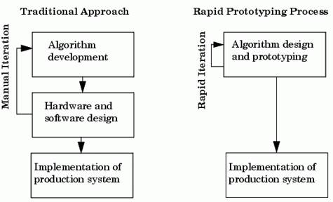 Procesul de elaborare rapida a prototipului combina faze de proiectare din diverse etape: proiectarea algoritmului adecvat, proiectare software sau proiectare hardware. Aceasta abordare elimina multe disfunctionalitati permitând inginerilor sa obtina sau sa vizualizeze rezultatele si sa itereze rapid diferite solutii înainte de constructia finala a prototipului.