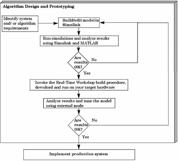 Când achipa de proiectanti ai algoritmului de conducere sau de prelucrare a datelor a îndeplinit toate specificatiile, echipa de software implementeaza algoritmul într-un mediu de simulare si specifica cerintele hardware. Echipa de proiectare hardware creaza asa numitul hardware de productie (production hardware). În final, echipa de implementare integreaza hardware-ul într-un sistem industrial mai cuprinzator. Procesul traditional de dezvoltare de aplicatii de timp real dureaza în general foarte mult deoarece el are un caracter iterativ.