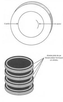 Unitatile de hard-disc au de obicei mai multe discuri numite platane, care sunt amplasate unul deasupra celuilalt si se rotesc solidar, fiecare având câte doua fete, pe care unitatea stocheaza date. Majoritatea unitatilor au cel putin doua sau trei platane, care dau patru sau sase fete, iar unele unitati au pâna la 11 sau mai multe platane. Pistele aflate la aceeasi pozitie, de pe fiecare fata a fiecarui platan, luate împreuna, alcatuiesc un cilindru. O unitate de hard-disc are în mod normal câte un cap pentru fiecare fata de platan, toate capetele fiind montate pe un singur dispozitiv purtator, sau rack. Capetele se deplaseaza solidar înspre interior si exterior, de-a lungu1 razei discu1ui; ele nu se pot deplasa independent, deoarece sunt montate pe acelasi rack.