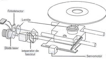 2. Servomotorul, la comanda microprocesorului, pozitioneaza raza pe pista corecta de pe CD-ROM, deplasând oglinda reflectorizanta.