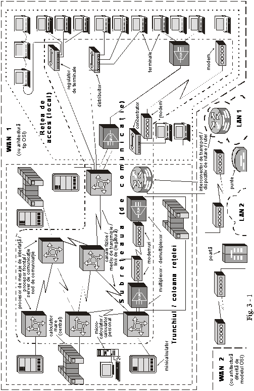 Structura generala a unei retele de calculatoare (cu eventualele sale interconectari cu alte retele) este ilustrata īn fig. 2