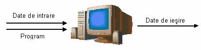 Calculatorul este o masina care prelucreaza informatiile automat. Pentru aceasta trebuie sa i se furnizeze datele pe care trebuie sa le prelucreze (datele de intrare) si o lista de instructiuni (programul), care sa îi indice cum sa prelucreze aceste date. Daca pentru a ajunge la un rezultat trebuie sa execute mai multe operatii, el le va efectua pe rând. Operatiile si ordinea acestora îi sunt specificate calculatorului prin intermediul programului. Calculatorul va furniza utilizatorului rezultatele obtinute în urma prelucrarii (date de iesire). În timpul prelucrarii pot sa apara si date intermediare.