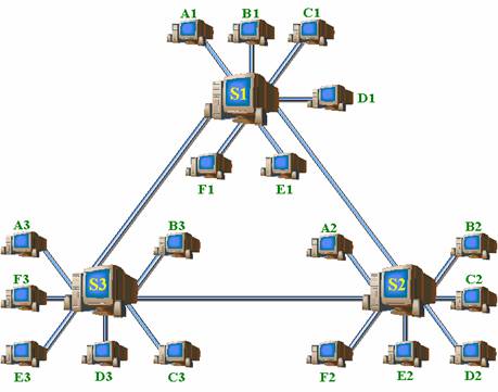 În acest caz, sunt legate circular mai multe calculatoare dispecer, care