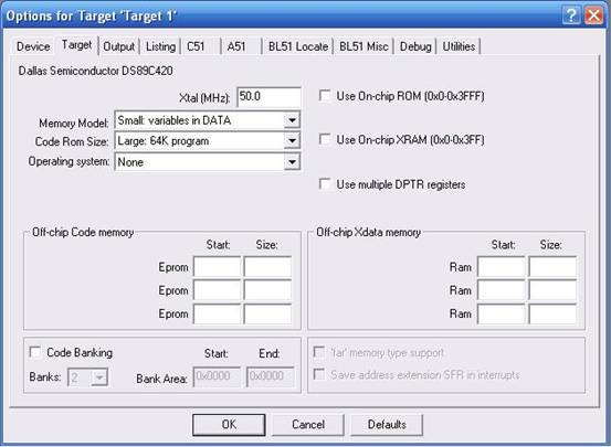 Din bara Target I se alege Option for Target 'Target 1', in care se selecteaza: