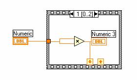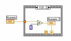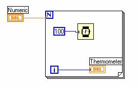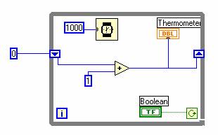 Terminalul notat cu "N" se initializeaza cu valoarea numarului de repetari ale ciclului. "i" reprezinta contorul ciclului. Daca se doreste o temporizare ( o întârziere între iteratii consecutive ale ciclului - utila de exemplu în cazul în care se achizitioneaza o marime dintr-un proces la interval de o secunda ) se introduce în subdiagrama o functie de tip "Wait" (întârzierea se specifica în milisecunde prin conectarea unei constante la blocul de temporizare).
