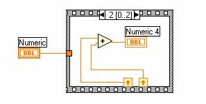 Este necesar deseori sa se treaca valori dintr-o iteratie în iteratia urmatoare . În acest scop se folosesc "registre de deplasare" ("shift registers" ce se introduc din meniul contextual asociat blocului ). Acestea nu au un tip de date asociat preluând tipul de date de la constantele la care sunt legate.
