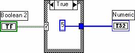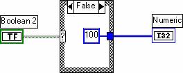 Valoarea legata la terminalul marcat cu "?" reprezinta selectorul structurii. În functie de tipul selectorului se schimba si constantele de selectie din partea de sus a subdiagramei. În exemplul nostru am ales un selector de tip boolean deci identificatorii de selectie sunt "TRUE" si "FALSE". Se trece prin fiecare identificator folosind sagetile si se construiesc subdiagramele asociate.