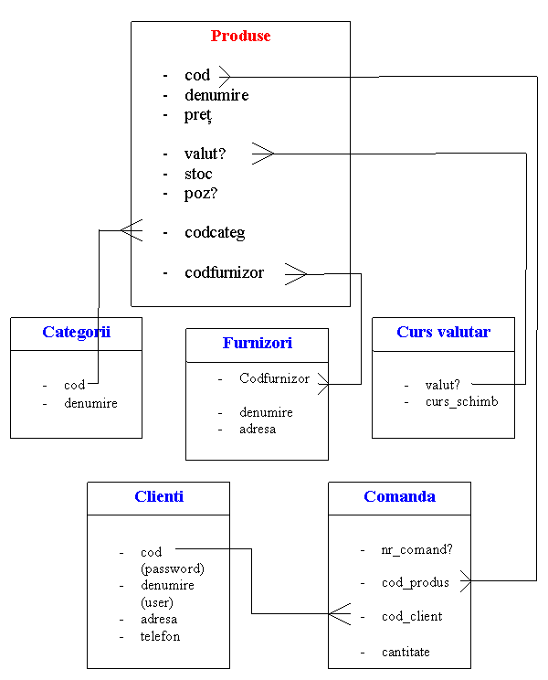Baza de date Magazin contine urmǎtoare tabele si legǎturile lor: