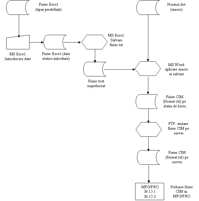 Fisierul Normal.dot trebuie instalat in catalogul C:\Program Files\Microsoft Office\Templates\ de pe statia de lucru. El contine macroinstructiunea CIM1 cu care se va prelucra fisierul text continand datele salvate in faza finala, din Excel.