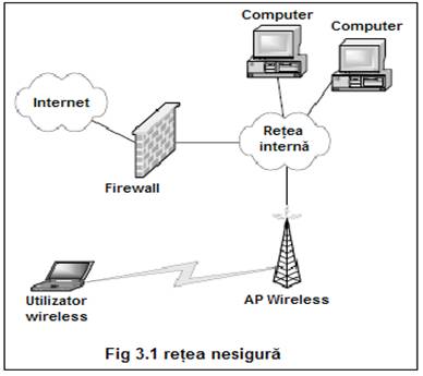Folosind ca si contraexemplu reteaua nesigura descrisa mai sus, voi descrie cāteva aspecte care trebuie urmarite īn cazul implementarii unei retele wireless sigure: