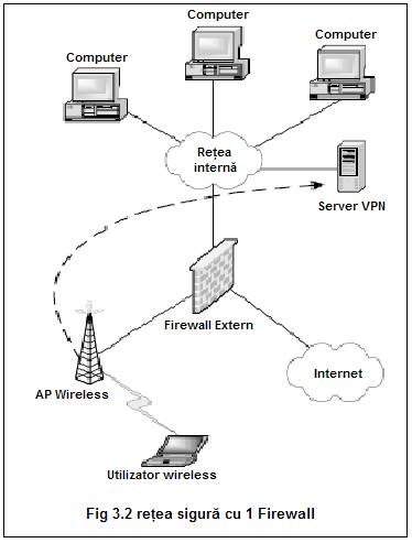 Solutia implementata cu un singur firewall respecta anumite cerinte cu privire la autentificare si criptare, īnsa nu reprezinta solutia ideala deoarece toata securitatea retelei interne se bazeaza doar pe serverul VPN.