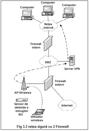 retelei folosind 2 firewall, unul protejānd reteaua interna, iar