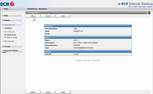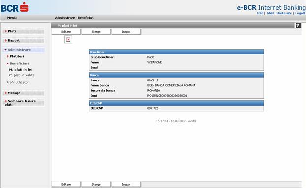Pentru alimentare carduri personale BCR, beneficiarul se alege astfel: