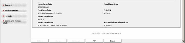 Pentru salvarea, fie a Platitorului fie a Beneficiarului, in bazele de date de pe serverul Centralei, bifati casutele corespunzatorae: Salvare platitor si/sau Salvare beneficiar.
