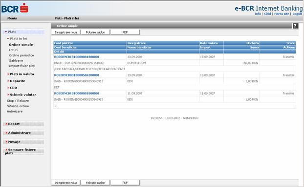 Aceasta informatie va fi transmisa in mod real de catre Banca, rapiditatea depinzand de viteza conexiunii dumneavoastra.