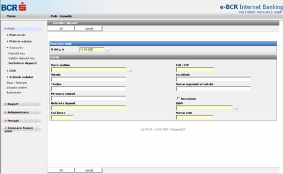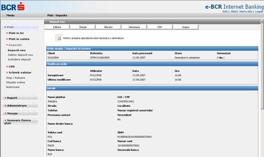o Pentru produse: CDD, Depozite si Schimburi valutare: