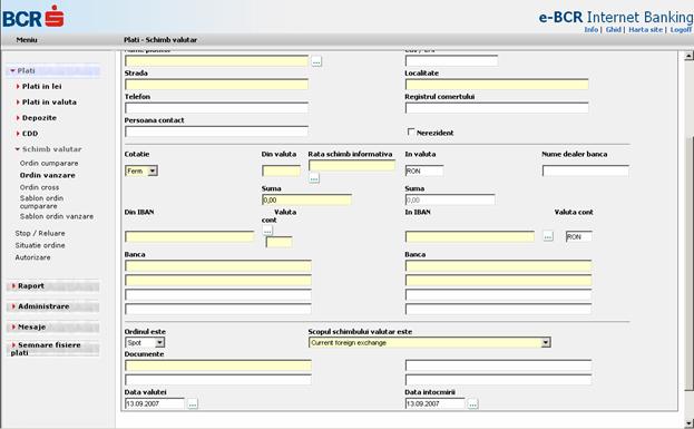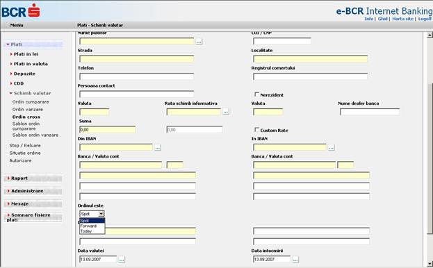 In cazul unor tranzactii ce depasesc un anumit plafon minim, care se stabileste de banca si care poate suporta modificari in functie de politica bancii, se poate lua legatura telefonic cu banca pentru a obtine un curs special, caz in care se va completa cimpul "Nume dealer banca" cu numele salariatului BCR care a acceptat tranzactia la un alt curs decit cel afisat.