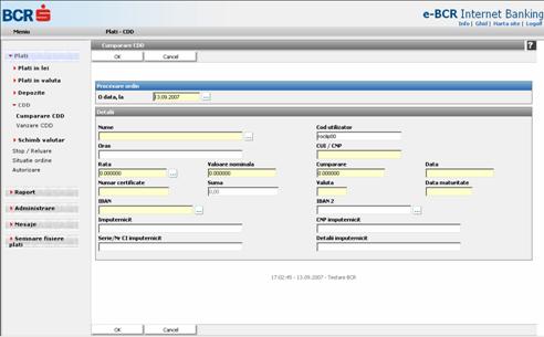 Cimpurile Valoare nominala, Cumparare, Data, Valuta si Data maturitate se vor completa automat de catre sistem dupa ce se semneaza operatiunea.