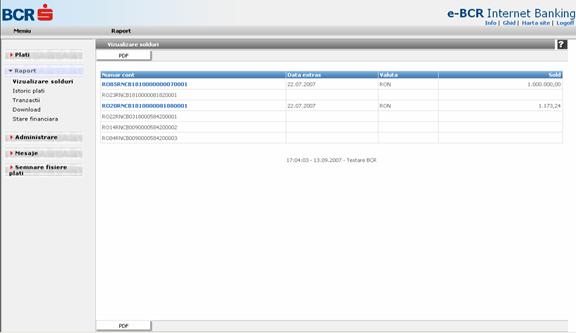 Se vizualizeaza toate conturile clientului si soldurile respective, daca banca a emis extras pentru acel cont.