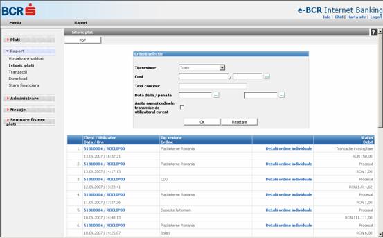 Se poat vizualiza starea platilor efectuate in ultimele 10 zile.