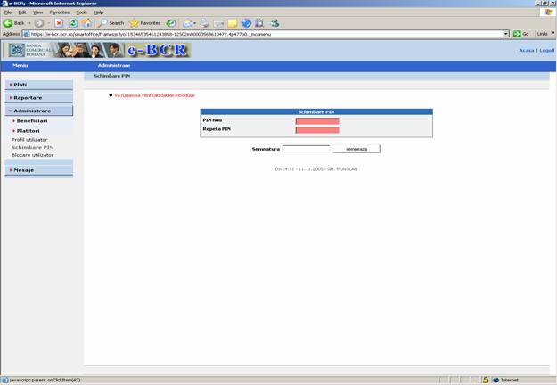 Schimbare cod PIN (pentru utilizatorii de liste TAN):