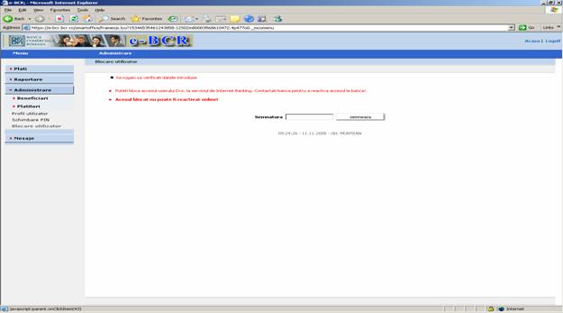 Un utilizator isi poate bloca singur accesul sau la e-BCR.