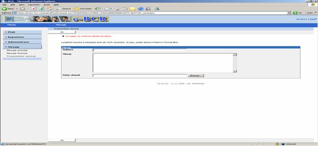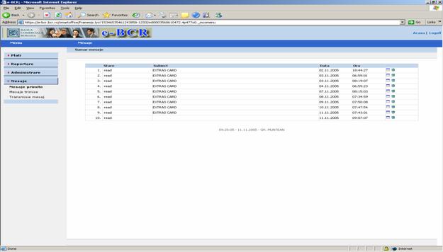 Se vizualizeaza mesajele transmise de client la banca. Se utilizeaza in cazul in care, un client Persoana Juridica, transmite fisierul si mesajul de alimentare carduri pentru salarii.