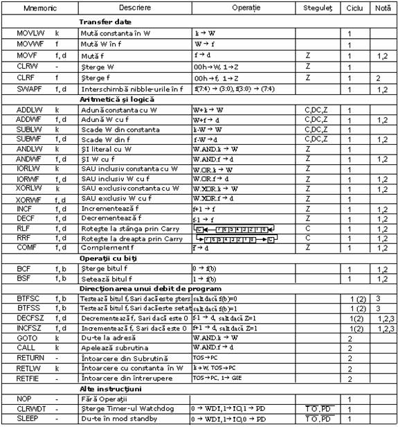 Set de Instructiuni în Familia Microcontrolerului PIC16Cxx
