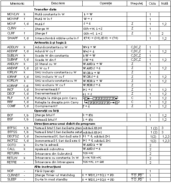 Set de Instructiuni in Familia Microcontrolerului PIC16Cxx