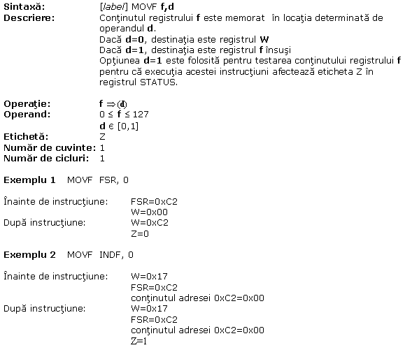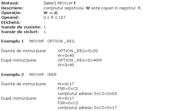 A.2 MOVWF Copiaza W in f