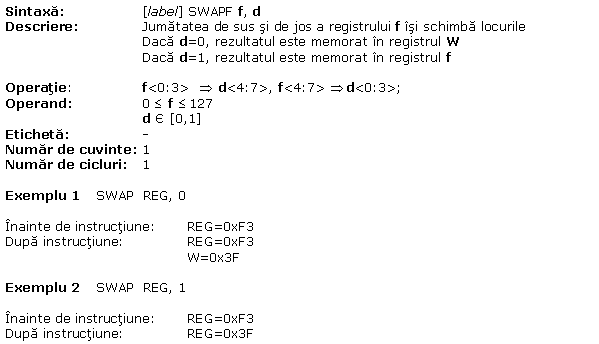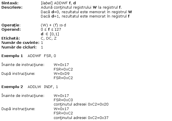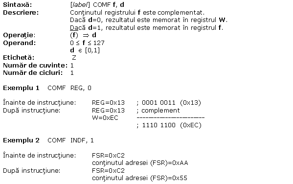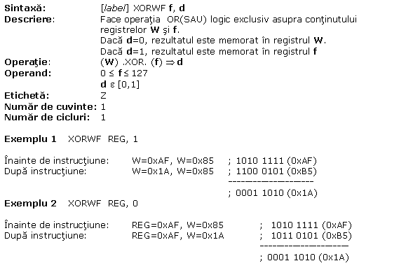 A.16 XORWF W logic exclusiv OR(SAU) cu f