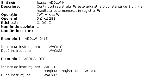 A.1 MOVLW Scrie