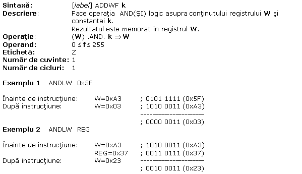 A.11 ANDLW W AND(SI) logic cu o