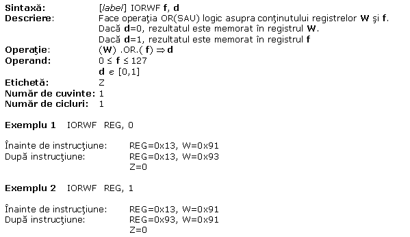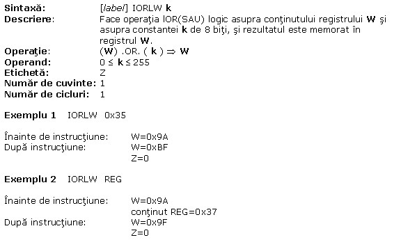 A.13 IORLW W OR(SAU) logic cu o