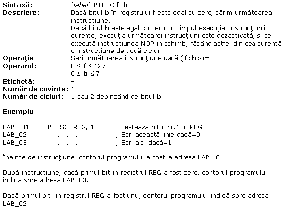 A.24 BTFSC Testeaza bitul b in f, sari daca = 0