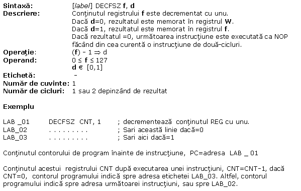 A.27 DECFSZ Decrementeaza f, sari daca = 0