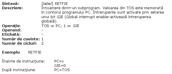 A.32 RETFIE Intoarcere dintr-o rutina de intrerupere
