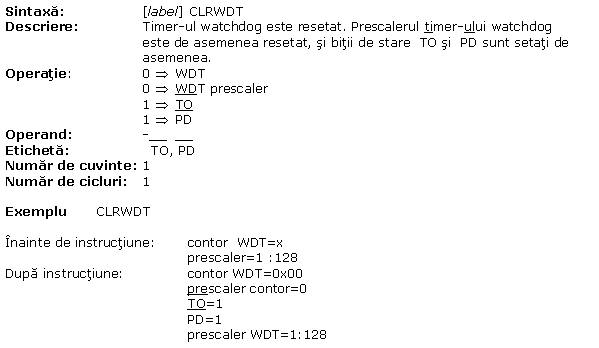 A.34 CLRWDT Initializeaza timer-ul watchdog