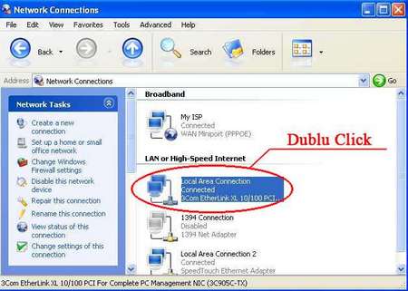 Pentru a seta alocarea dinamica a IP-urilor, mergeti in Start -> Control Panel -> Network Connections