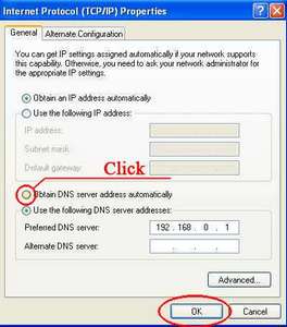 Bifati casuta " Obtain DNS server address automatically" si inchideti toate ferestrele pe care le-ati deschis efectuand click pe OK.