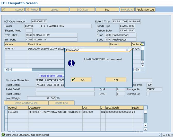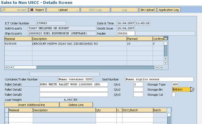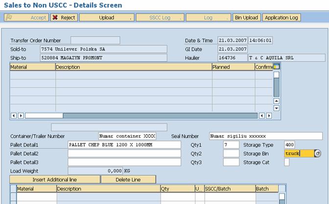 Completati Plant, Storage Location, Sold-to Party, Ship-to Party, si Haulier number ca in ecranul urmator. Click pe butonul "Accept" .