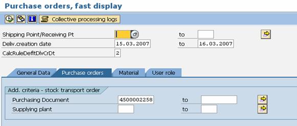 Introduceti purchase order number si execute (atentie speciala la completarea delivery creation date interval).