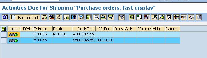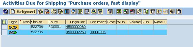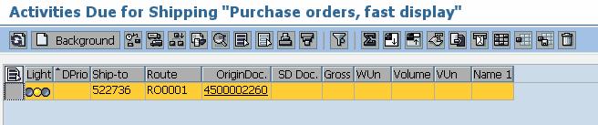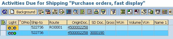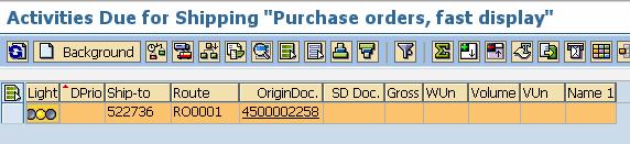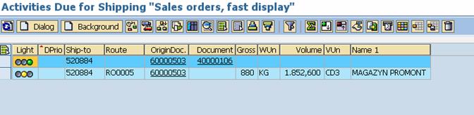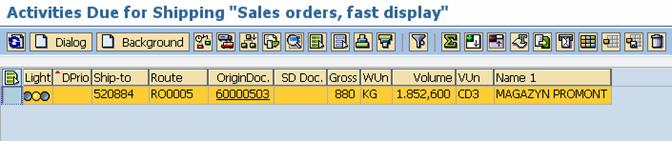 Sistemul va afisa ecranul "Activities due for Shipping "Sales orders, fast display". Selectati randul ce contine sales order ce trebuie livrata. Click pe butonul "background".