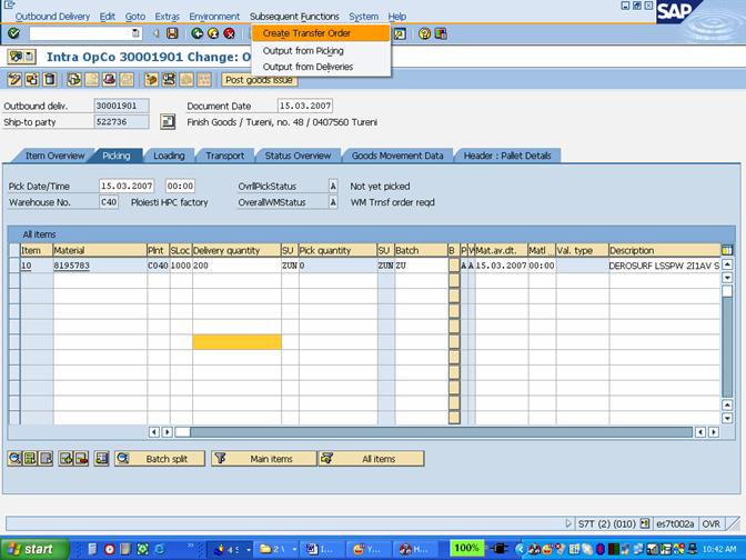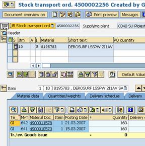Pe baza Purchase Order-ului creat in Plant C040, plant-ul C042 va proceda to despatch stocul catre plant C042.