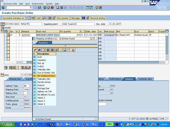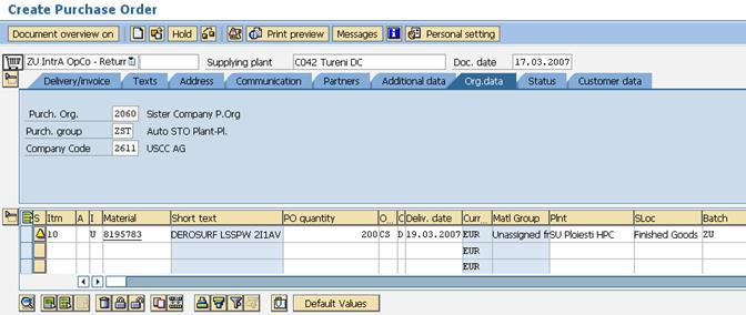 *NOTA numai ptr HPC: Ptr HPC Stock Transfer Orders (UB), este necesar sa se completeze campul Delivery Date localizat in tabul "Customer Data" la nivelul de header al Purchase Order