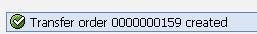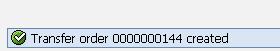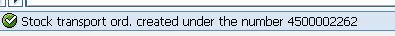 Stock transport order este salvata. Numarul comenzii este afisat in partea de jos a ecranului.