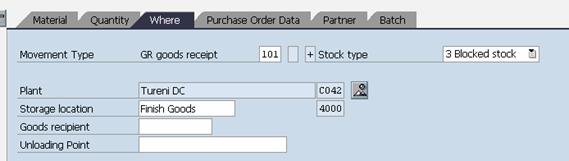 Introduceti material number, quantity, unit of measure, receiving plant code, si receiving storage location. Unitatea comandata trebuie sa aiba o unitate de masura valida.