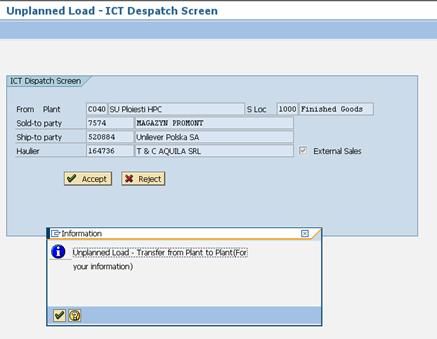 Sistemul v afisa o fereastra pop-ptr a informa ca Unplanned Load va fi creat. Apasati pe Accept.
