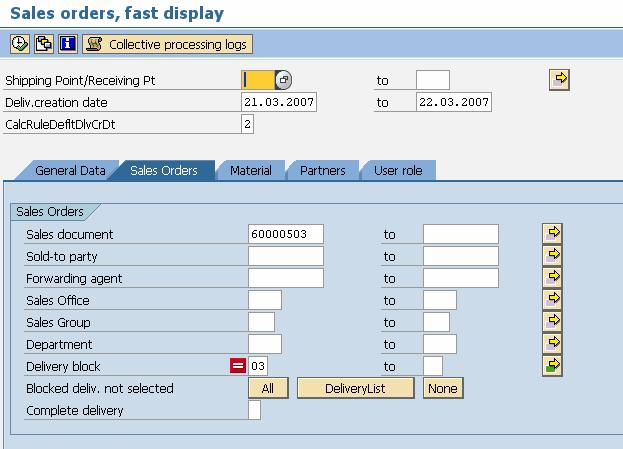 Introduceti tranzactia VL10A. Sistemul va afisa ecranul "Sales Order, fast display". Introduceti numarul ptr sales order number si Execute.