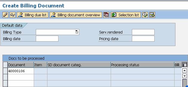 Introduceti tranzactia VF01 ptr a accesa ecranul ptr crearea billing document. Introduceti delivery number apoi Save.